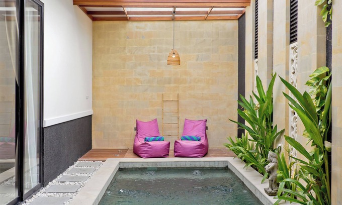 Indulge in a chic retreat at Orchid Villa, perfectly situated in the heart of the action. Just a stone's throw away from Legian's bustling eat street, you'll find yourself immersed in a world of culinary delights and entertainment. This stylish villa boasts a generously sized bedroom with an en-suite bathroom, offering picturesque views of the inviting swimming pool. Complete with a dining area and kitchen, including a brand-new coffee machine with complimentary capsules replenished daily.