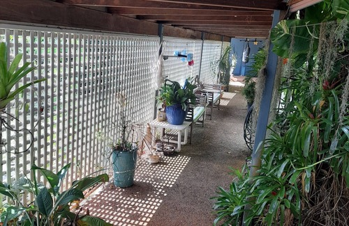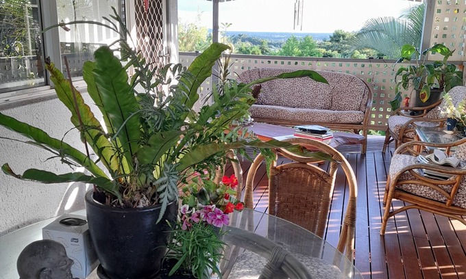 Two bedroom fully Self Contained Apartment/Retreat on Acreage, backs onto National Park overlooks Valley & out to Pacific Ocean. 90m above Sea Level, off Street Parking. Linen, crockery, microwave, Fridge, Fans, Large Verandah, outdoor living, & all you need including Washing machine, clothes lines, TV, pots & pans! Lots of room to move. Get fresh air & good nights sleep in this quiet Secure Safe Granny Flat/Apartment. Minimum 3 nights.