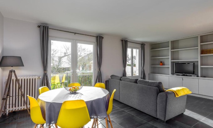 2 bed House near Disneyland Paris is located in Montry, just 3.4 miles from Disneyland Paris and 4.2 miles from Val d'Europe RER Station. Both free Wifi and parking on-site are available at the apartment free of charge. Domaine de Chaalis is 25 miles from the apartment and Gare de Lyon is 26 miles away. Offering a balcony and garden views, the apartment includes 2 bedrooms, a living room, satellite flat-screen TV, an equipped kitchen, and 1 bathroom with a shower. Towels and bed linen are featured in the apartment. The property has an outdoor dining area. Guests can also relax in the garden or on the sun terrace. Opéra Bastille is 27 miles from 2 bed House near Disneyland Paris, while Pompidou Center is 28 miles from the property. Paris - Charles De Gaulle Airport is 16 miles away, and the property offers a paid airport shuttle service.