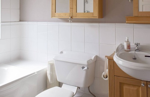 Bathroom: With shower over bath, toilet and heated towel rail.. Electric central heating, electricity, bed linen, towels and Wi-Fi included. Initial fuel for wood burner included. Welcome pack.. Rear enclosed garden with sitting-out area and garden furniture. Courtyard garden with garden furniture. Front enclosed shared garden with garden furniture. Bike store. On-road parking. No smoking.. Garden Cottage is a detached cottage set in a quiet location in the grounds of the owner’s home with its own private courtyard garden. Just minutes’ walk to sandy beaches and the village high street.