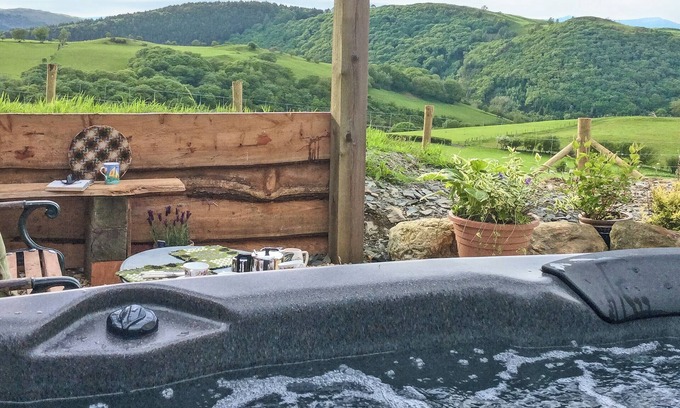 Shower Room: Cubicle Shower, Heated Towel Rail, Toilet. Oil central heating, electricity, bed linen, towels and fuel for wood burner included. Highchair. Welcome pack. Grounds with patio, sitting-out area and garden furniture. Hot tub (private). Private parking for 2 cars. No smoking. Please note: This property has a natural water supply via well.. Located in the heart of mid-Wales’ most stunning scenery and only a short distance to Snowdonia National Park. Cowlas is a gorgeous location for a romantic couple’s retreat, a getaway with three friends or a small family. Guests can get acquainted with nature with picturesque views across the rural Welsh scenery. Sit out under the stars and enjoy the private hot tub, ready on arrival. Or relax on the outdoor seating, including a veranda with ambient lighting and leafy plants and you can instantly feel at ease.