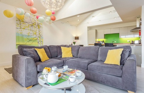 Shower Room: Cubicle Shower, Heated Towel Rail, Toilet. Oil underfloor central heating, electricity, bed linen, towels and Wi-Fi included. Travel cot and highchair. Welcome pack. Large enclosed lawned garden with decked area, garden furniture and gas barbecue. Private hot tub for 5. Bike store. Private parking for 2 cars. Wheelchair access. No smoking.