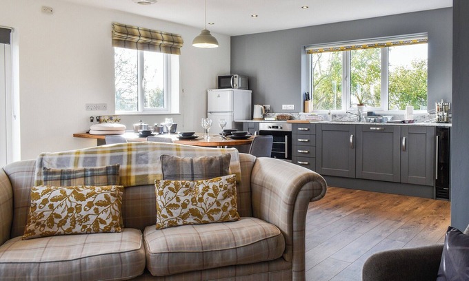 Bathroom: Bath With Shower Attachment, Walk-In Shower, Toilet. Gas central heating, electricity, bed linen, towels and Wi-Fi included. . Bike store. Private parking for 3 cars. No smoking.. The door opens to a spacious hall which offers access to all the rooms on this accessible single storey dwelling. The first room you come to is the twin bedroom which has plenty of space for wheelchair access. The bathroom is large with an accessible shower, and also offers a Japanese bathing tub for soaking away the aches and pains from a day’s walking or sightseeing. The kitchen is well equipped, and all amenities are wheelchair accessible. This is the perfect social space whether you are sat around the table enjoying a meal or sat around the wood burner telling stories of the day’s events.
