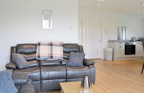 Shower Room: Walk-In Shower, Heated Towel Rail, Toilet. Oil underfloor central heating, electricity, bed linen, towels and Wi-Fi included. Welcome pack. Enclosed front garden with sitting-out area and garden furniture. Private parking for 2 cars. No smoking.. Kimberdale Lodge is spacious and beautifully situated. Set in large gardens with a picturesque, rural outlook in the peaceful Cumbrian countryside. It is flooded with light from the floor-to-ceiling patio doors which open out from the open plan living space. Kimberdale Lodge oozes space and style from its modern and fully equipped kitchen to the living area with comfortable leather sofas, where you can sit and relax overlooking the garden. The bedrooms boasts comfortable beds and quality linen whilst the sleek shower room boasts a large walk-in shower. The covered area to the rear of the lodge is particularly handy for all your wet weather gear – we do sometimes get rain here in Cumbria!