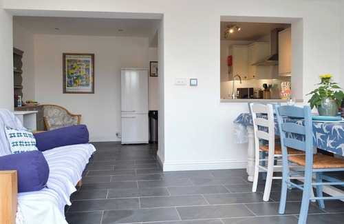 Bathroom: Bath, Cubicle Shower, Heated Towel Rail, Toilet. Electric heating, electricity, bed linen, towels and Wi-Fi included. Initial logs for wood burner included. Welcome pack.. Enclosed rear courtyard. On road parking; additional public car park. No smoking.. This beautifully appointed and surprisingly spacious seaside cottage sits just across the road from a beautiful sandy beach on the stunning sweep of Cardigan Bay. Within walking distance are shops pubs, cafes and a golf course.