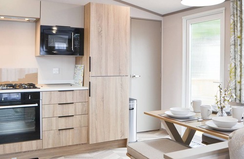 Separate Toilet.. Gas central heating, gas, electricity, bed linen, towels and Wi-Fi included. Welcome pack. . Terrace with sitting-out area and garden furniture. Private parking for 2 cars. No smoking. Please note: There is 3 steps in the garden. Couples, family bookings and holidaymakers only.. This brand new, 2022 model, luxury caravan, situated on the popular Brigham Holiday Park is ideal for couples and families to enjoy the Lake District and The West Cumbrian Coast.