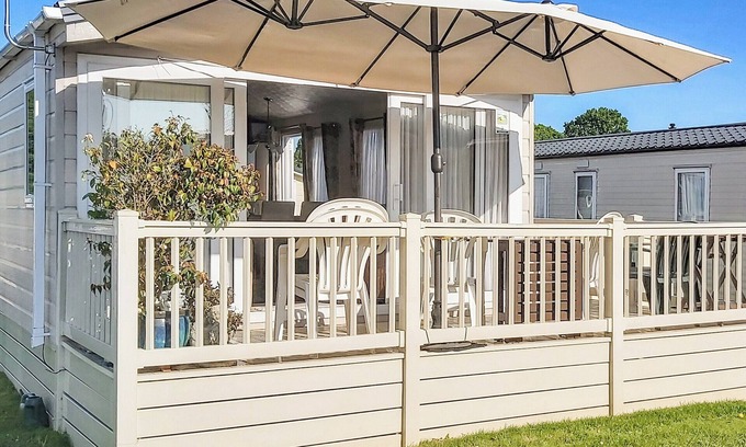 Bathroom: Bath With Shower Over, Toilet. LPG central heating, electricity, gas, bed linen, towels and Wi-Fi included. Highchair. Welcome pack. Front garden with terrace and barbecue. Carp fishing on-site (licence required). Private parking for 1 car, additional on-site parking available. No smoking. Please note: There is a lake on site. . This delightful property is situated on a peaceful park in the seaside town of St Osyth on the Essex coast. It offers open plan living space, making it the ideal social space, and there are two bedrooms, one with an en-suite and a walk-in wardrobe. Outside, the terrace is ideal for enjoying a glass of your favourite tipple whilst admiring starry nights.
