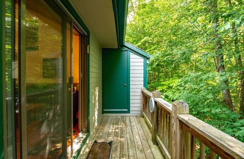 Tastefully furnished and equipped town home; stone fireplace; loft unit with cathedral ceiling; private balcony; wooded setting.