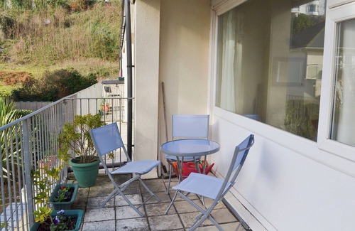 Shower Room: Cubicle Shower, Toilet. Electric central heating, electricity and bed linen included. Welcome pack. Balcony with outdoor furniture. Private parking for 1 car. No smoking.. This superbly located first floor apartment, set in private grounds is nestled only 100 yards from the family friendly beach, with life guard and amenities. The property has been decorated and furnished to a good standard. The living room has a door leading through to a south-facing balcony, with table and chairs, perfect for alfresco dining, or a glass of wine and a book.