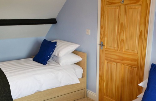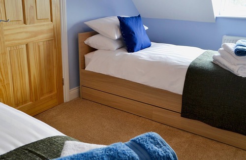 Bedroom 2: With twin beds and sloping ceiling.