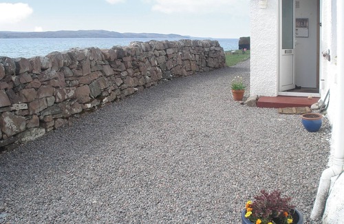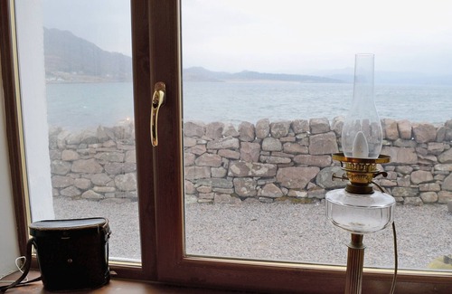 Shower Room: Cubicle Shower, Bidet, Heated Towel Rail, Toilet. Electric central heating and electricity by meter reading. Bed linen, towels and Wi-Fi included. Starter supply of logs for multi fuel stove included. Cot, highchair and stairgate available on request. . Sitting-out area and furniture. Parking for 2 cars. Please note: The property has a grass slope leading to rocky shoreline. This property has a security deposit of £100.. The cottage is the first in an attractive row of white cottages along the seas edge, off the centre of the village, a tranquil, secluded outstanding spot. A couple of minutes’ walk over a burn to a convenience store, newsagent, butchers, bookshop, restaurant, café and pub, and you are right on the NC500 route, should you wish to venture out further along the coast. It is a magnificent area to spot and hear wildlife right from the cottage, such as red and black throated divers, gannets, terns, otters, seals, porpoises and curlew and oystercatchers on the rocks. Enjoy the surrounding beautiful scenery, gorgeous sea views to the hills and beaches of Gairloch, the Torridon hills islands and over to the Isle of Skye. The front of the house is a sun trap, a perfect spot to relax, and take in the view. There are spectacular sunsets over Skye.