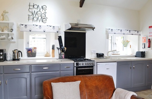 Living area: With wood burner, 32" Freeview TV, DVD player, iPod dock and CD player.