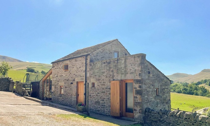 Shower Room: Walk-In Shower, Toilet. Central heating, electricity, bed linen, towels, Wi-Fi and initial fuel for wood burner included. Travel cot and highchair. Enclosed back garden with patio, garden furniture and barbecue. One small pet welcome. Lockable bike shed with freezer. Private parking for 2 cars. No smoking.. The Sheep Shack is in a great location on the side of Kinder Scout in the Peak District National Park. It makes an ideal base for walking, running, cycling and exploring the Peak District. Many walks and trails start from right outside the front door. The building is a converted barn and full of character but also benefits from a contemporary interior with high quality fittings and sustainable technologies such as ground source underfloor heating. As you enter the property you will be blown away by the open plan space and high ceilings with fantastic views from each window.