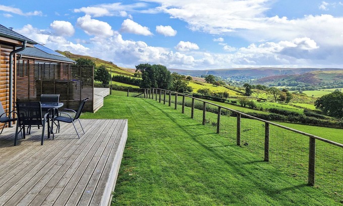 Bedroom 2: Zip And Link Kingsize Bed (2 x Singles On Request), Freeview TV Ensuite: Cubicle Shower, Toilet. Underfloor central heating, electricity, bed linen, towels and Wi-Fi included. Initial logs for wood burner included, remainder £5 per basket. Welcome pack. . Small enclosed decked patio with garden furniture and BBQ. Hot tub for 4 (private). Private parking for 2 cars. No smoking.. These luxurious, detached, single-storey lodges are situated on a working beef and sheep farm and enjoy fabulous views over the hillsides. They are the perfect place for those wanting to explore the countryside or simply relax and watch the sun setting. The open plan living space boasts 16ft bi-folding doors which open to the south facing decking.
