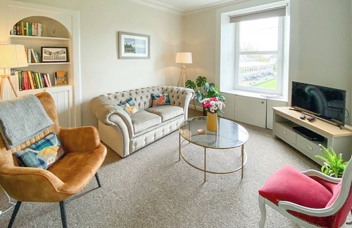 Bedroom 2: Single (3ft) Bed. Gas central heating, electricity, bed linen, towels and Wi-Fi included. Welcome pack. . No smoking.. Church Place is a lovely holiday apartment set quietly in the delightful harbour town of Kirkcudbright. The Apartment is beautifully decorated and offers a quiet and relaxing space with a lovely outlook over the town’s bowling green (110 yards awa). With a modern kitchen, delightful living room with views over the bowling green, two lovely bedrooms, the master being particularly bright and spacious, Church Place really does offer a lovely base from which to explore the area. Kirkcudbright is a lovely town on the estuary which still has a busy and bustling harbour. Stroll through the town and visit the famous Broughton House, once home to E. A. Hornel. Kirkcudbright is known as the ’artists’ town’ having hosted generations of painters, craft makers and artisans – a culture still thriving today. Visitors are attracted throughout the year, drawn by the harbour, the historic high street and the diverse range of annual events and visitor attractions. The popular programme of summer festivities culminates with the spectacular Tattoo, an event not to be missed.