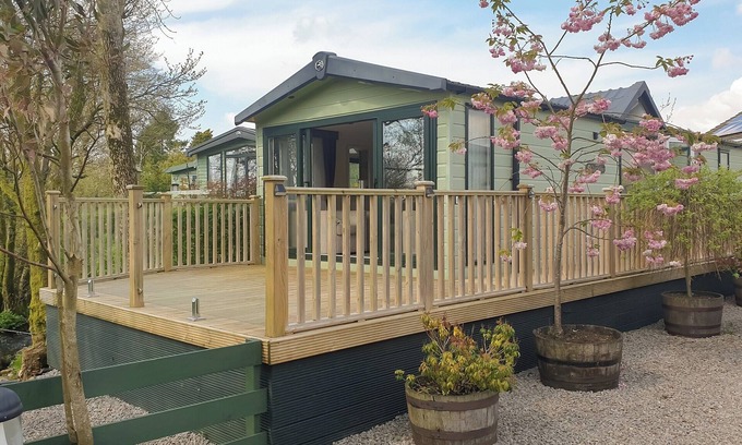 We adore the airy ambience of this charming open-plan lodge, nestled in a tranquil park surrounded by rolling hills. You can enjoy the soothing sounds of the babbling brook beside the lodge from the deck.. All on the Ground Floor: