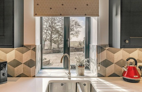 Bedroom 2: Double (4ft 6in) Bed, Freeview Smart TV Ensuite: Bath With Shower Over, Toilet. Gas and underfloor heating, gas, electricity, bed linen, towels and Wi-Fi included. Welcome pack. Back garden with patio, sitting-out area and garden furniture. Bike store. Private parking for 4 cars. No smoking.. Set back on a quiet lane in Marple Bridge and boasting far reaching views of the glorious surrounding countryside, is this incredibly beautiful stone-built barn. With two bedrooms and three bathrooms it makes a luxurious base for couples and small families wanting to escape the hustle and bustle of everyday life. Full of character and charm you’ll find exposed stone and beams blended beautifully with tasteful décor. In the cold, winter months you can enjoy underfloor heating and a wood burner in the sociable open plan kitchen and living space, and in the warm summer months the patio area is a perfect place to simply relax and unwind. There’s ample off-road parking and secure storage for bikes.