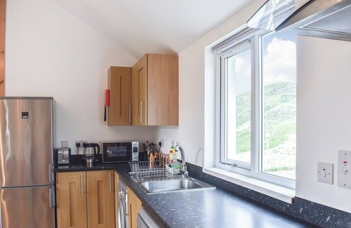 Shower Room: Cubicle Shower, Heated Towel Rail, Toilet. Electric central heating, electricity, bed linen, towels and Wi-Fi included. Initial fuel for wood burner included, remainder available locally. Travel cot and highchair available on request. Welcome pack. . Enclosed lawned garden with sitting-out area and garden furniture. Private parking for 2 cars. No smoking.. A converted mission hall with views across a sea loch and surrounding hills. The house is a single storey detached property overlooking the hamlet of Marvig, with an enclosed garden and parking space for two cars. There is one double bedroom, one with bunk beds and an additional fold-out bed, ideal for a child. The living, dining and kitchen area is all open plan making the cottage brighter and well suited for spending time together. The garden has a small lawned area and larger wild grass area with plenty of space for a seating area for al fresco dining.
