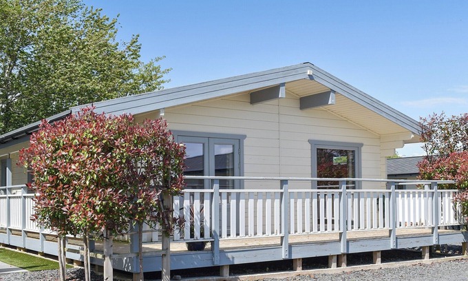 Shower Room: Walk-In Shower, Heated Towel Rail, Toilet. Electric central heating, electricity, bed linen, towels and Wi-Fi included. Terrace with sitting-out area and garden furniture. Landscaped grounds (shared with other properties on site). Hot tub for 4 (private). Private parking for 2 cars. No smoking. Please note: Fenced pond in grounds, 100 yards. . All properties: Electric central heating, electricity, bed linen, towels and Wi-Fi included. Terrace with sitting-out area and garden furniture. Landscaped grounds (shared with other properties on site). Hot tub for 4 (private). Private parking for 2 cars. No smoking. Please note: Fenced pond in grounds, 100 yards.. All five lodges are open plan and offer ground floor accommodation, with one double bedroom, one twin bedroom and a walk-in shower. There is a private hot tub and terrace for each lodge, overlooking landscaped grounds with four alpacas, and parking for two cars.
