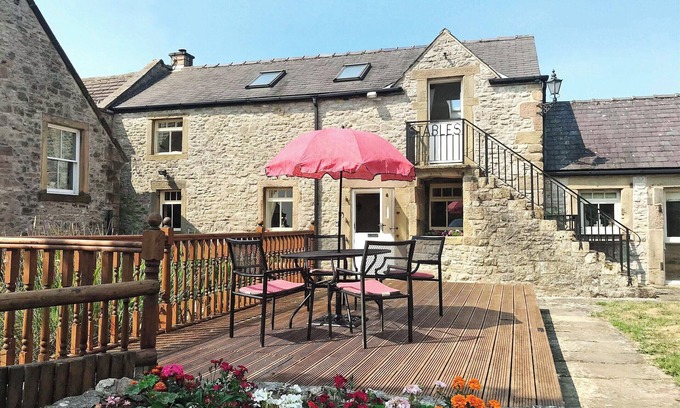 Bathroom: Bath, Toilet. Oil central heating, electricity, bed linen, towels and Wi-Fi included. Welcome pack. Travel cot and highchair available on request.. Decked sitting-out area with garden furniture. Courtyard (shared with other properties on-site). Private parking for 1 car. No smoking. Please note: There is a fenced pond at the front of the property.. Situated in a beautiful quiet courtyard in the quaint village of Over Haddon you will find The Old Stables, a beautiful converted barn ideal for up to four guests. The former farm building was once owned by the Prime Minister Lord Melbourne, to whom Queen Victoria was very close to, and sits adjacent to the owner’s home, Manor Farm, a medieval Grade II listed manor house which dates back to 1553. The Old Stables is one of six dotted around this stunning courtyard setting and has been converted to a good standard throughout. The property offers exposed beams and is full of character, really giving this holiday home a unique feel. Stable doors welcome you into the open plan kitchen and living area, and upstairs there are two bedrooms and a super bathroom complete with a spa bath.
