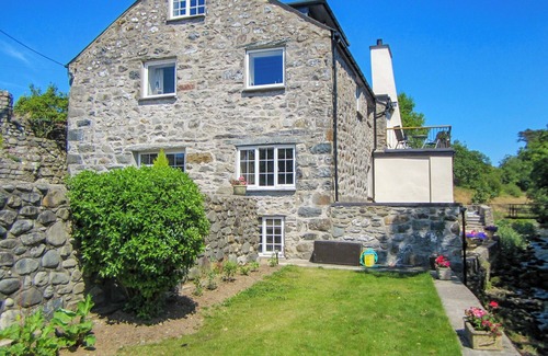 Shower Room: Cubicle Shower, Toilet. Oil central heating, electricity, bed linen, towels and Wi-Fi included. Travel cot and highchair. Welcome pack. . Sitting-out area with garden furniture. Private parking for 1 car. No smoking. Please note: There is an unfenced river in the grounds.. This charming, spacious garden apartment boasts a stunning location alongside the River Llyfni. It is perfectly positioned for exploring the spectacular scenery of the Snowdonia National Park, and the gently rolling countryside of the Llyn Peninsula with its miles of sandy beaches. Cleverly converted on the ground floor of this former woollen mill, the apartment offers plenty of space for four guests, with a welcoming open plan living space and two bedrooms. There is an interconnecting door between this apartment and Tryfan (ref UK6628), ideal for larger groups.