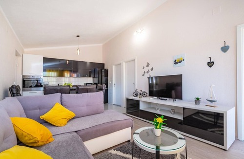 These attractive apartments are located on the second floor of a vacation house, in the small village of Podgradina, near the town of Zadar. They each consist of two bedrooms, a bathroom and a kitchen-living room. Children's playground equipment such as swing, slide, playhouse and sandbox can be shared on the property. The proximity of the beach, which is about 1 km from the accommodation, allows you to swim and sunbathe all day with family or friends. On the nearby highway you have the opportunity to get to the national parks North Velebit, Paklenica and Krka, which are worth visiting for their natural beauty. Visit the city of Zadar and see the historical sights of the old town.