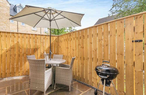 Bedroom 2: Kingsize (5ft) Bed Ensuite: Walk-In Shower, Heated Towel Rail, Toilet. Gas central heating, electricity, bed linen, towels and Wi-Fi included. Initial fuel for wood burner included. Welcome pack. Enclosed sitting-out area with garden furniture and barbecue. On road parking. No smoking.. Escape to the heart of Yorkshire and indulge in a luxurious holiday experience at this stunning two-bedroom, ground floor apartment in central Richmond. With its impeccable attention to detail, luxury furnishings, and special touches throughout, this accommodation offers a truly memorable stay in one of England’s most charming regions.