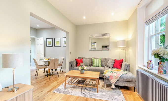Enjoy an open plan living area, where you’ll find a beautifully designed space for relaxation and entertainment. The fully equipped kitchen boasts high-end appliances and all the amenities you need to whip up delicious meals. Enjoy your culinary creations at the stylish dining table, and unwind in the comfortable living area, complete with plush seating and a Smart TV. The apartment features two en-suite bedrooms, each elegantly furnished and offering a peaceful retreat after a day of exploration. The en-suite bathrooms are modern and well-appointed, ensuring your comfort and convenience throughout your stay. Outside, a delightful rear sitting-out area awaits, complete with a bistro table and chairs. Enjoy a morning coffee or an evening glass of wine in this private outdoor space. Roadside parking is available for unloading your luggage upon arrival, and there are nearby parking options for longer stays.