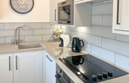 With original, character beams, previously stables is now home to two comfortable kingsize and double bedrooms sharing a beautifully finished, contemporary bathroom with oversized shower. Offering plenty of space for four, the open plan living and kitchen, warmed by an electric wood burner enjoys high beamed ceilings, a modern, well-equipped kitchen and sofas to sink into after a day of exploring.
