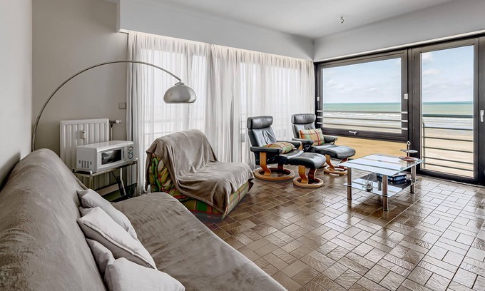 Sun Beach 0404 .Beautiful, pleasant and well kept corner apartment sunny side with 2 bedrooms and frontal sea view on the 4th floor in St.Idesbald