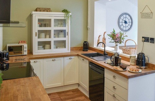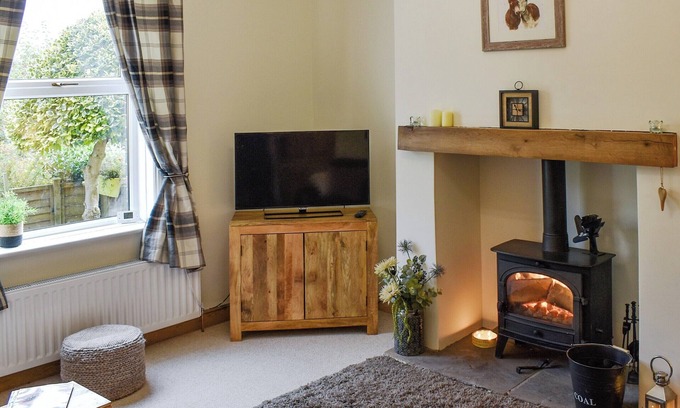Bathroom: Bath With Shower Over, Heated Towel Rail, Toilet. Electric central heating, electricity, bed linen, towels and Wi-Fi included. Initial fuel for wood burner included. Welcome pack. . Back garden with patio, sitting-out area, garden furniture and BBQ. Front garden with patio, sitting-out area and garden furniture. Bike store. Private parking for 1 car. No smoking.. This beautiful railway cottage offers a comfortable stay on the edge of the charming market town of Thirsk. This semi - detached stone-built cottage has plenty of character and offers both families, couples and friends a perfect holiday retreat whilst being ideally located to explore all that the North York Moors has to offer.