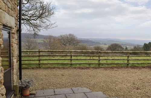 Bedroom 2: 2 x Single (3ft) Beds Ensuite: Cubicle Shower, Toilet. Gas central heating, gas, electricity, bed linen, towels and Wi-Fi included. Highchair. Patio with terrace and garden furniture. Bike store. Private parking for 1 car. No smoking.. Commanding panoramic views across the beautiful Derwent Valley towards Ladybower Reservoir, this truly outstanding and idyllically peaceful and private cottage boasts a smart and very comfortably furnished interior with a farmhouse-style kitchen and a ’panorama’ terrace – a perfect all year round retreat. Castleton Caverns and Castle are just 4 miles away, Chatsworth, Haddon Hall, Bakewell and Buxton are all about 10 miles. There is walking from the door and cycle hire, fishing, golf within 1.5 miles. Shop 1 mile, pub/restaurant 0.75 miles.