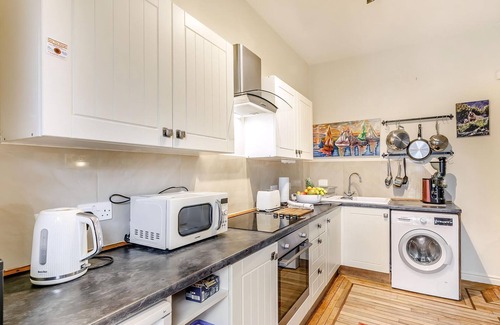 Bedroom 2: 2 x Single (3ft) Beds. Gas central heating, electricity, bed linen, towels and Wi-Fi included. Enclosed courtyard with sitting-out area and garden furniture. On-road pay and display parking, 500 yards: additional public car parking, 350 yards, free of charge. No smoking.. Situated in the very centre of the Calderdale market town of Todmorden is this beautifully presented property. Accessed via a short narrow lane a stone’s throw from Todmorden train station. As soon as you step through the gate you won’t be disappointed. You enter the property via the enclosed courtyard which catches the sun well into the evening, and into a wonderful sunroom. You’ll immediately find the property is jam packed full of character with each and every room stylishly decorated with a blend of beautifully coordinated colours and furnishings. The open plan living and dining space overlooks Todmorden’s’ open market on the main high street, and in the bathroom pride of place is a beautiful slipper bath. The access and steep narrow stairs mean the property isn’t suited to those with reduced mobility, however its central location and vicinity to the train station means it’s perfect for those wanting to give their cars a rest.
