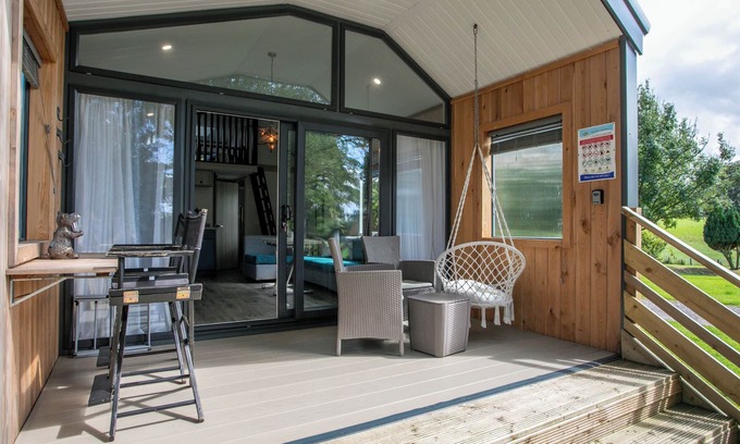 A stunning Stargazer which offers superb space for a family, double bedroom, shower room, mezzanine bedroom with double bed, well-equipped kitchen and an open plan lounge and dining area with a double sofa bed. Outside there is a seating area and a private bubbling hot tub to relax in after a day of exploring the area. No Pets.