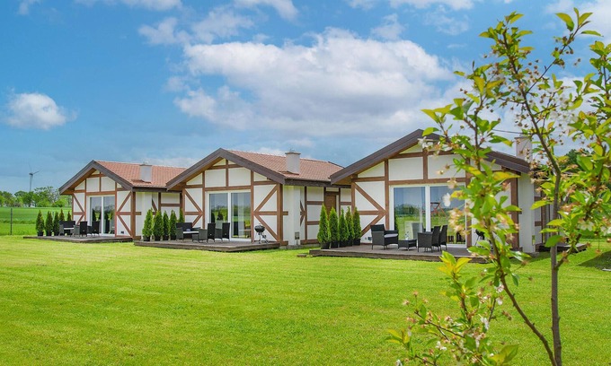 A short distance from the coastal village of Jarosawiec, you will find this child-friendly holiday cottage. A good starting point for an active family holiday. The summer accommodation with its inviting atmosphere offers everything you need for a carefree holiday. In the living room, you will immediately notice the large windows, which provide both a good amount of light and a beautiful view. The house has a marvellous terrace where happy times of enjoyment await you. The huge, shared natural plot is a paradise for all childlike souls! Let the children jump on the trampoline or play volleyball. Perhaps you'd like to join in? Buy some fresh strawberries for an afternoon snack.