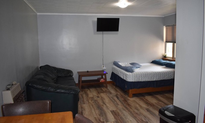 We offer four different rooms for rent within a motel-like structure. This particular room, with two queen beds, a sofa bed, a kitchen and a bathroom, accommodates up to six people. Guests will have access to Wi-Fi and television (Netflix), along with typical essentials and amenities. Outside, there are grills, picnic tables and a spot for campfires. It is just a few minute walk to both lakes, the beach and a boat rental location that offers kayaks, electric rowboats, canoes and pedal boats. Bike rentals will also be available, as there are many different roads and trails to explore around the area. An ideal place for experiencing a peaceful vacation with similar adventures to camping, but all at the comfort of utilizing a kitchen and spending the night in a cozy bed.