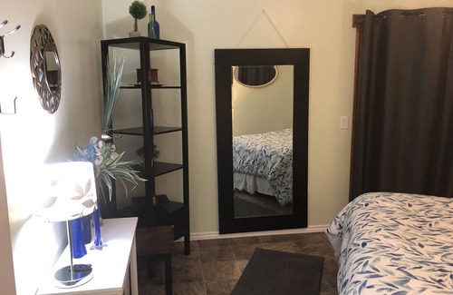 This nice 2 bedroom apartment has its own pool side patio a large bathroom with full size washer and dryer and a 2 bedrooms with queen size beds. It is a very quiet place in an older neighborhood and close to lots of shopping and main roads. The pool is a 20 foot long and can be used as a hot tub or swim spa, swim against at speeds 1- 18km/h. Or just relax in the pool or watch TV and enjoy your self.