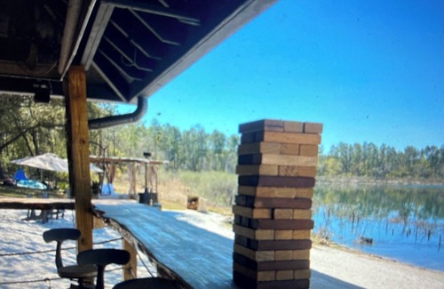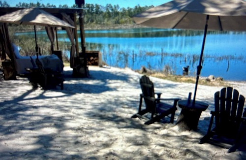 3 Queen beds, 2 bedrooms, queen futon sofa. Lake front, tiki bar with swings, covered cabana. Gated property for privacy. 20 minutes from Panama City Beach. Ten minutes from Ecofina Springs.