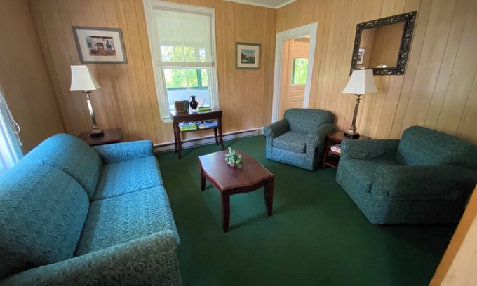 This cottage sits tucked in the trees along Route 26, and the nature trail. A 10 minute walk, or short drive from the cottage is the swimming pool shared with all hotel guests, lots of lawn games including shuffleboard, bocce, and horseshoes, the golf course and more. Restaurants serving breakfast, lunch & dinner right on the property! Across Route 26 you'll find our mini golf, driving range and disc golf course along with an ice cream shop!