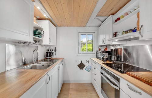 Very cozy cottage with personal decor. The bright kitchen-living room has exposed ceiling beams. A house in a unique location in Ho Bay and therefore it also enjoys a panoramic view of the sea. The plot is very uneven. In the neighborhood there are many small cottages with a personal style. All have a beautiful view of the sea and the shipping line that leads to the port of Esbjerg. A truly unique cottage in a cozy style and not far walking distance from the best ice cream store in the area as well as Hjerting Badehotel. In Ho bay you can also swim but.