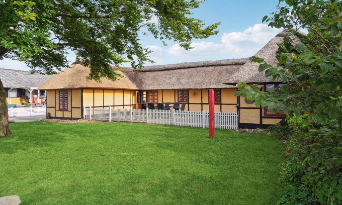 Your thatched cottage in Øsløs has room for a family. The cosy furnishings create a welcoming atmosphere, while the practical facilities ensure that you have everything you need for your stay to hand. Prepare delicious meals in the functional kitchen and then enjoy them in the light-flooded dining area or on the open terrace.