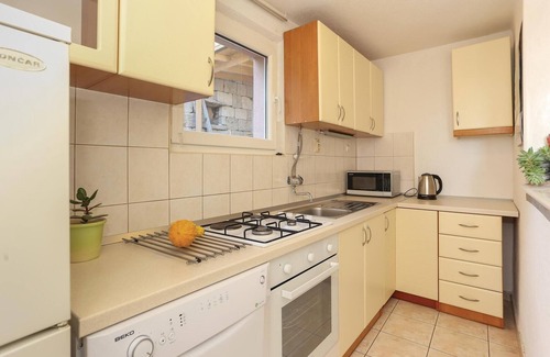 Spend a pleasant vacation in this beautiful cottage in the small town of Gata, which is ideal for your family vacation. The house consists of two bedrooms, bathroom and kitchen with living room. Behind the house is the garden, where the pool offers refreshment. At the available barbecue you can prepare delicious dishes for your loved ones. The sea with its beautiful beaches is about 3.3 km away. Visit the town of Omis, where you can expect many entertainment options for all generations.