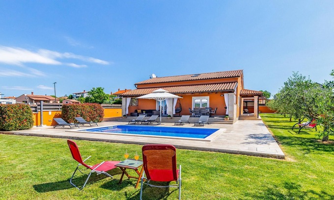 Spend a great vacation in this vacation bungalow near Pula. It is ideal if you want to escape from everyday life, but still be in 10 minutes by car in the city center, as well as beaches in the area. On this large fenced property your children can play carefree. In the immediate vicinity is also a playground. Refreshment can be found in the pool. Spend fun barbecue evenings on the covered terrace with summer kitchen. Visit the resort Medulin with sandy beach and many recreational facilities and restaurants. Enjoy crystal clear sea, hidden bays and exceptional flora and fauna at Cape Kamenjak.