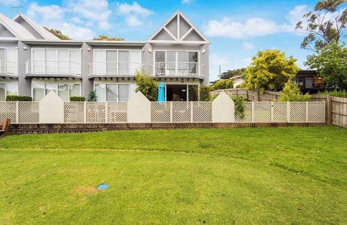 While this two-bedroom, split-level townhouse is centrally located just 400 metres from the beach, and an easy stroll to the main street of Cowes, once inside it feels like you’re miles from everywhere.