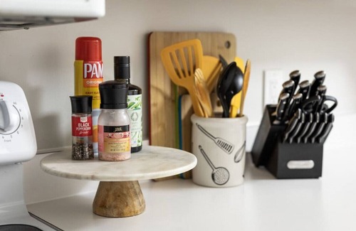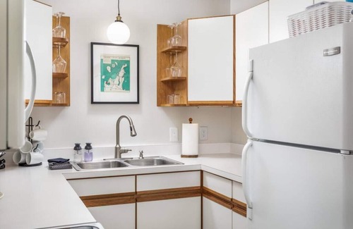 Rest comfortably in two bedrooms featuring queen-sized beds, plus a loft with two twin-sized beds, each room complete with provided bed linens and bath towels. An in-unit washer and dryer are available with the essential supplies fully stocked. One dedicated parking spot is available in the garage, with space for another vehicle right behind it. Street parking is also available in the summer months.