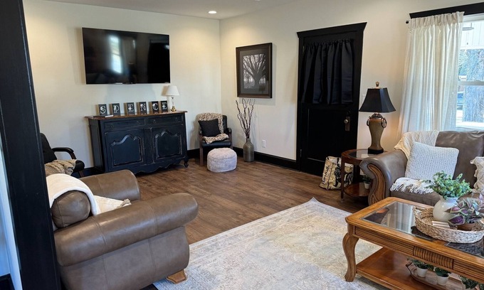 In Carrollton, relax in this charming two-bedroom getaway that's within walking distance to the University of West Georgia. Enjoy the comforts of home with a fully equipped kitchen, dishes and utensils, and a spacious living room. Refresh in the 2 bathrooms stocked with towels, basic soaps, and a hair dryer. Stay connected with the included WiFi, and keep your clothes fresh with the in-unit washer and dryer. You'll appreciate the air conditioning and heating to stay comfortable year-round. Secure parking is available, so you can explore the local area with ease. Whether you're visiting the university or just looking for a relaxing getaway, our vacation home provides the perfect home base for your travels.