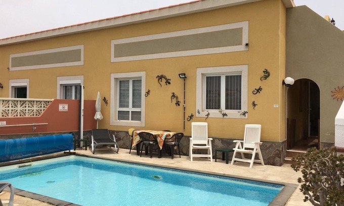 Yes, this Caleta de Fuste villa has a swimming pool. Check the Facility Overview section for details about the pool and other available facilities.
