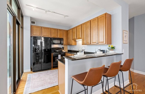 Welcome to your extended-stay retreat in the heart of Chicago’s South Loop. Whether you’re here for work, relocating to the city, enjoying a few months of travel, or in transition between homes, this beautifully furnished 2-bedroom, 2-bathroom high-rise residence offers all the comforts of home with the polish and amenities of a luxury hotel.