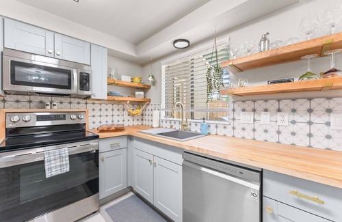 This inviting 1,160 sqft 2 story townhouse has everything you will need! A fully stocked luxury kitchen with new appliances, a dining table that will seat 6, and a half bath with a full sized washer and dryer on the first floor.