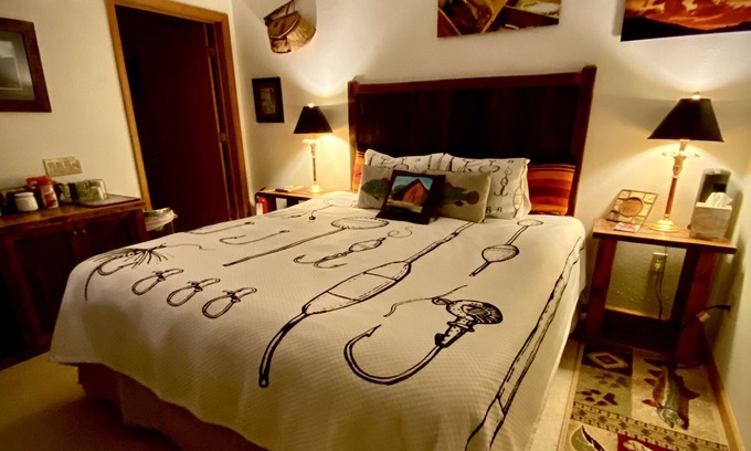 Hannon House is an original Montana homestead farm house, built in 1900, just steps from the Bitterroot River, settled in the late 1800's. The Westslope Suite has a private deck and entrance. It is a deluxe single bedroom with a king sized bed, luxury bath and an enclosed screened porch. This little bungalow includes a soaking tub, shower, TV with Dish Network, small microwave, mini refrigerator and a Keurig coffee maker. It's a luxurious retreat in the heart of the Bitterroot! Hot tub on the back deck! Portions of the property are irrigated hay fields. In addition to the original farm house, the site includes old barns and structures, a boat house and fire pit on the west bank of the Bitterroot River. Wade and float fishing are immediately accessible. The owner/host lives on site. Guests are encouraged to roam the grounds, explore the river and enjoy the views and comfort of an old fashioned Montana lifestyle. On the Lewis and Clark trail of discovery (Really, they walked through the front yard).